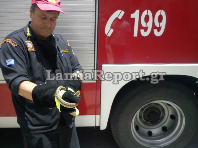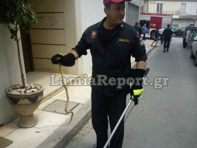 Σήμερα λίγο μετά τη 1:00΄ το μεσημέρι, δέχθηκαν τηλεφώνημα για φίδι σε είσοδο πολυκατοικίας στην οδό Μιαόυλη στη Λαμία.