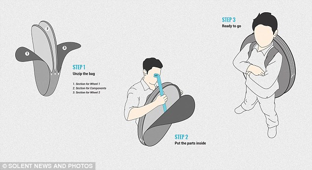 Ουσιαστικά του μέγεθος ή καλύτερα η διάμετρος της... τσάντας-ποδήλατο είναι σαν αυτή μιας ανοιχτής ομπρέλας. Ο κάτοχος του ποδηλάτου έχει τη δυνατότητα να το διαλύει και να το επανασυναρμολογεί μέσα σε λίγα λεπτά. Συνολικά το ποδήλατο αποτελείται από 19 τμήματα και από τις δύο ρόδες. Κάθε ρόδα μπαίνει σε μία από τις δύο πλευρές που έχει η τσάντα μεταφοράς και στο κέντρο τα υπόλοιπα μέρη όπως η σέλα, η αλυσίδα, το τιμόνι.