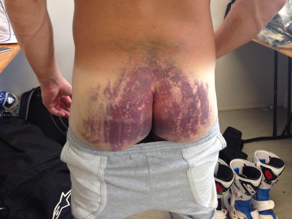 Για να υμνήσει την υπερπροσπάθειά του, το «αφεντικό» της ομάδας της Suzuki, Πολ Ντένινγκ δεν δίστασε να δημοσιεύσει στο Instagram τα... πονεμένα οπίσθια του ντε Πινιέτ, που από ότι φαίνεται θα κάνει καιρό να καθίσει δίχως να υποφέρει.