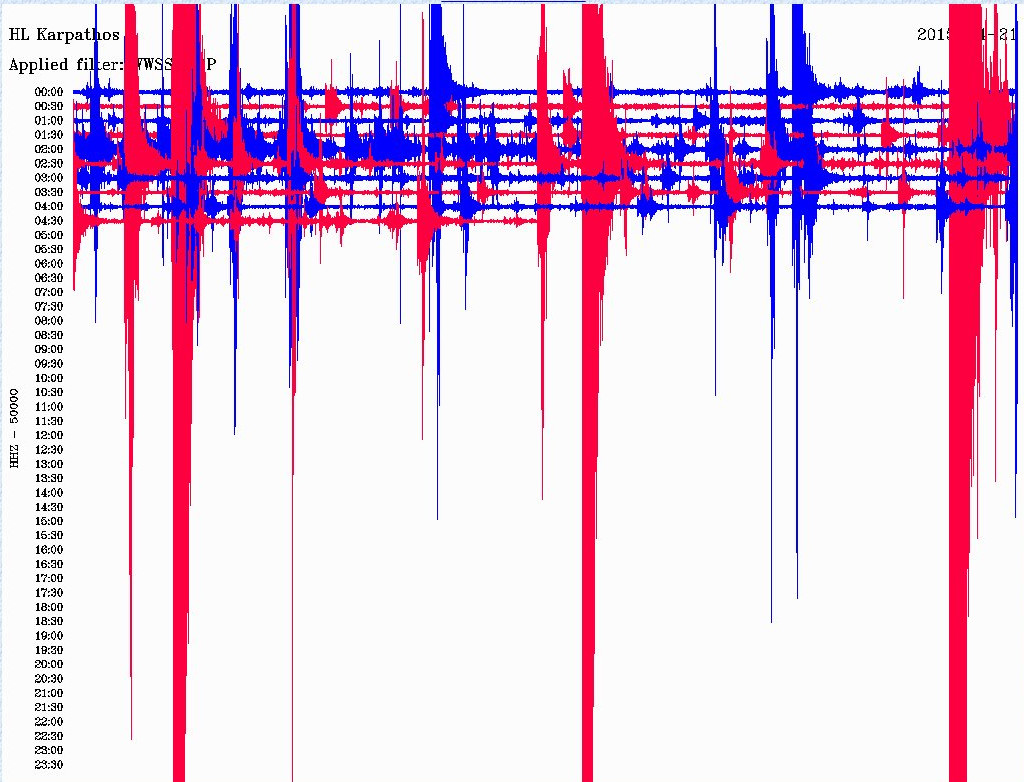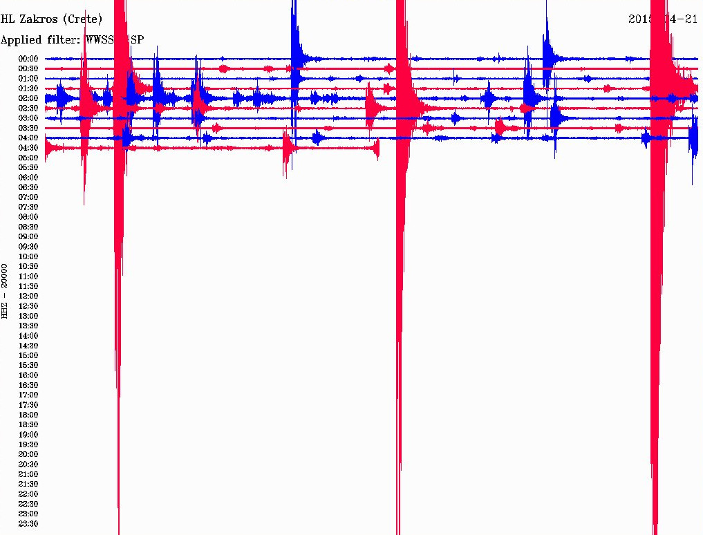 Η δόνηση όπως την κατέγραψε ο σεισμογράφος που είναι εγκατεστημένος στην Κάρπαθο