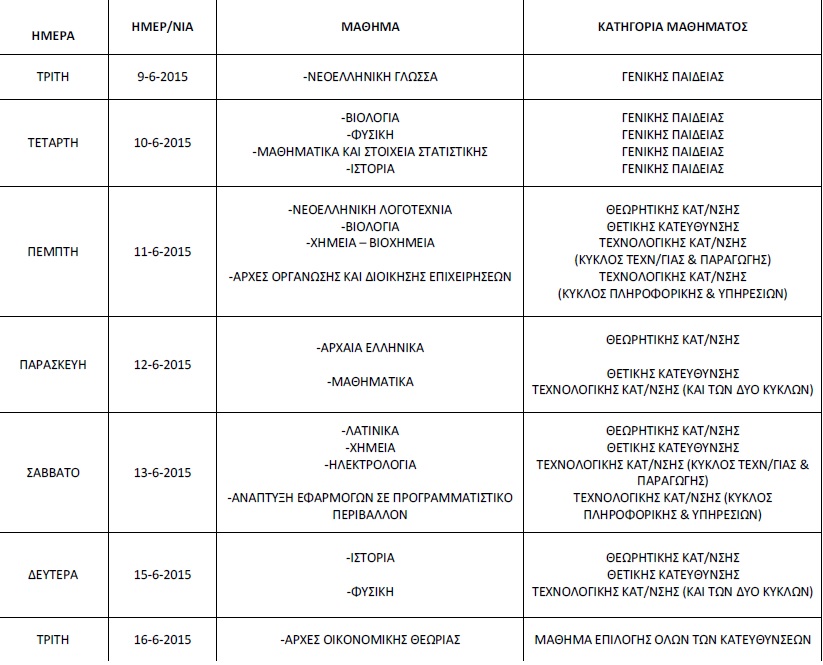 Οι υποψήφιοι που θα συμμετάσχουν σε κάποιο από τα μαθήματα των επαναληπτικών εξετάσεων και απουσιάσουν από τις ενδοσχολικές εξετάσεις θα μπορούν να συμμετάσχουν στις επαναληπτικές ενδοσχολικές εξετάσεις του Ιουνίου, σύμφωνα με το πρόγραμμα του σχολείου τους.
