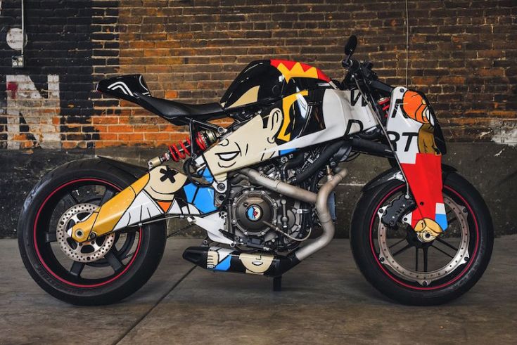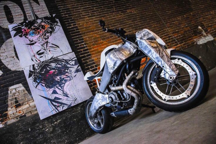 Η εφαρμογή της τέχνης του σε μια Buell 1125 αποτέλεσε για κείνον μια έξοχη πρόκληση. Κάθε γραμμή και γωνία μασκαρίστηκαν ιδιοχείρως και κατόπιν χαράκτηκαν με οξύ πάνω στο γυμνό αλουμίνιο. Οι έντονες αντιθέσεις σχημάτων και μοτίβων δημιουργήθηκαν με τη χρήση αμμοβολής.