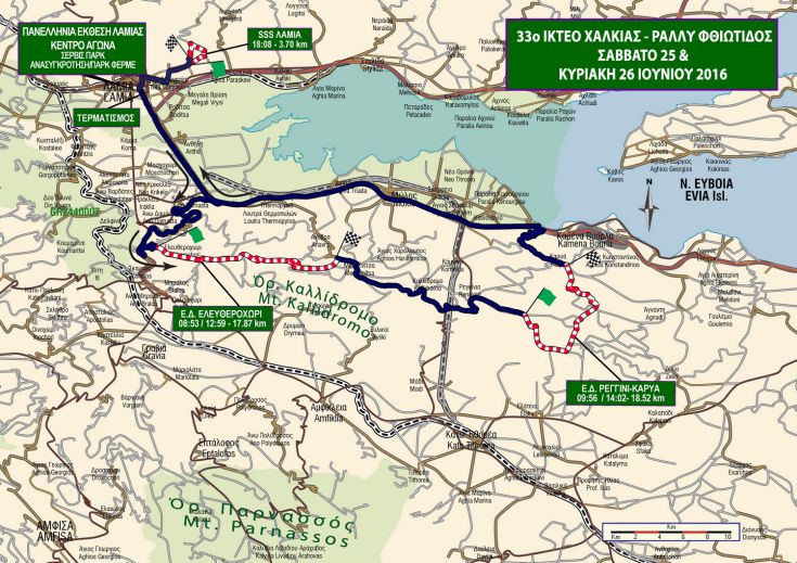 Η εκκίνηση θα δοθεί το απόγευμα του Σαββάτου 25 Ιουνίου στις 17:45, με τα αυτοκίνητα να κατευθύνονται προς τον χώρο του ΧΥΤΑ Λαμίας, όπου και θα διεξαχθεί η Υπερειδική Διαδρομή του αγώνα, μήκους 3,7 χιλιομέτρων. Έπειτα θα επιστρέψουν στην Πανελλήνια Έκθεση Λαμίας για σέρβις και διανυκτέρευση, με το κυρίως μέρος του αγώνα να διεξάγεται την Κυριακή 26 Ιουνίου και να περιλαμβάνει 2 περάσματα από τις Ειδικές Διαδρομές «Ελευθεροχώρι» μήκους 17,87 και «Ρεγγίνι-Καρυά» μήκους 18,52 χιλιομέτρων, συνθέτοντας έτσι έναν αγώνα συνολικού μήκους 76,48 αγωνιστικών χιλιομέτρων.