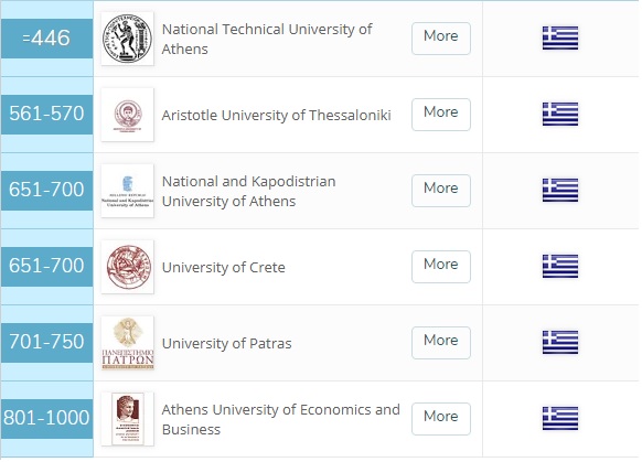 - Τα δύο Ελληνικά πανεπιστήμια με την υψηλότερη επίδοση στον δείκτη που μετρά τη Φήμη των Εργοδοτών (Employer Reputation) είναι το Εθνικό Μετσόβιο Πολυτεχνείο το οποίο κατατάσσεται στην 224ή θέση και το Οικονομικό Πανεπιστήμιο Αθηνών στην 293ή θέση.