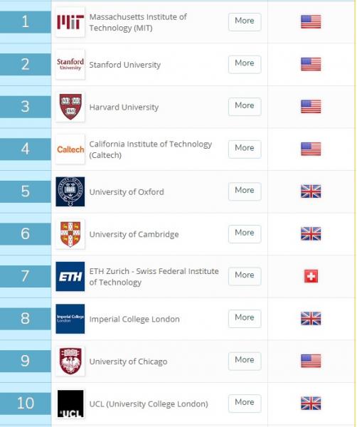 Σε διεθνές επίπεδο, το Τεχνολογικό Ινστιτούτο Μασαχουσέτης (Massachusetts Institute of Technology) παραμένει ο παγκόσμιος ηγέτης για έβδομη συνεχόμενη χρονιά, ενώ το κορυφαίο πανεπιστήμιο της Ελλάδας με την καλύτερη επίδοση στη φετινή κατάταξη παραμένει το Εθνικό Μετσόβιο Πολυτεχνείο, το οποίο κατέχει την 446η θέση.
