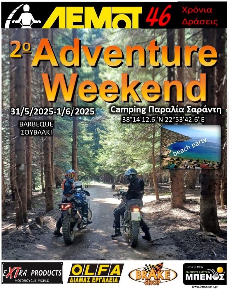 Το 2o ΛΕΜΟΤ ADVENTURE WEEKEND θα πραγματοποιηθεί το Σαββατοκύριακο 31/05 – 01/06 στην παραλία Σαράντη, σε ένα οργανωμένο camping...
