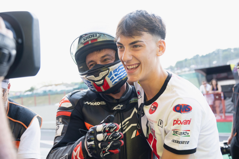 Χαρούμενες στιγμές με τον Luca Lunetta στην διάρκεια του προηγούμενου Αγώνα. 2025 Season of World Motorcycle Championship 2025 in Mugello Circuit, Scarperia, Tuscany, Italy © 2025 mirco lazzari mircolazzari@yahoo.it
