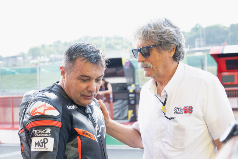 Στο Mugello o Paolo Simoncelli μου δίνει συμβουλές για την οδήγηση στην πίστα. 2025 Season of World Motorcycle Championship 2025 in Mugello Circuit, Scarperia, Tuscany, Italy © 2025 mirco lazzari mircolazzari@yahoo.it