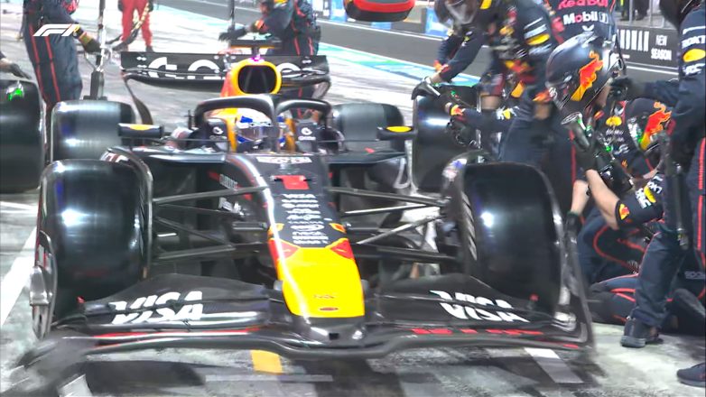 Όλος ο σημερινός αγώνας κρίνεται στην στρατηγική των pit stops. Έτσι, ο Verstappen (που είχε κάνει ήδη μία αλλαγή ελαστικών κατά τη διάρκεια του safety car) θα κάνει και το δεύτερο υποχρεωτικό του pit stop στον γύρο 35. Έβαλε τη σκληρή γόμα και θα πάει μέχρι το τέλος (21 γύρους ακόμα), έχοντας πλέον μπροστά του, τους Norris και Piastri.