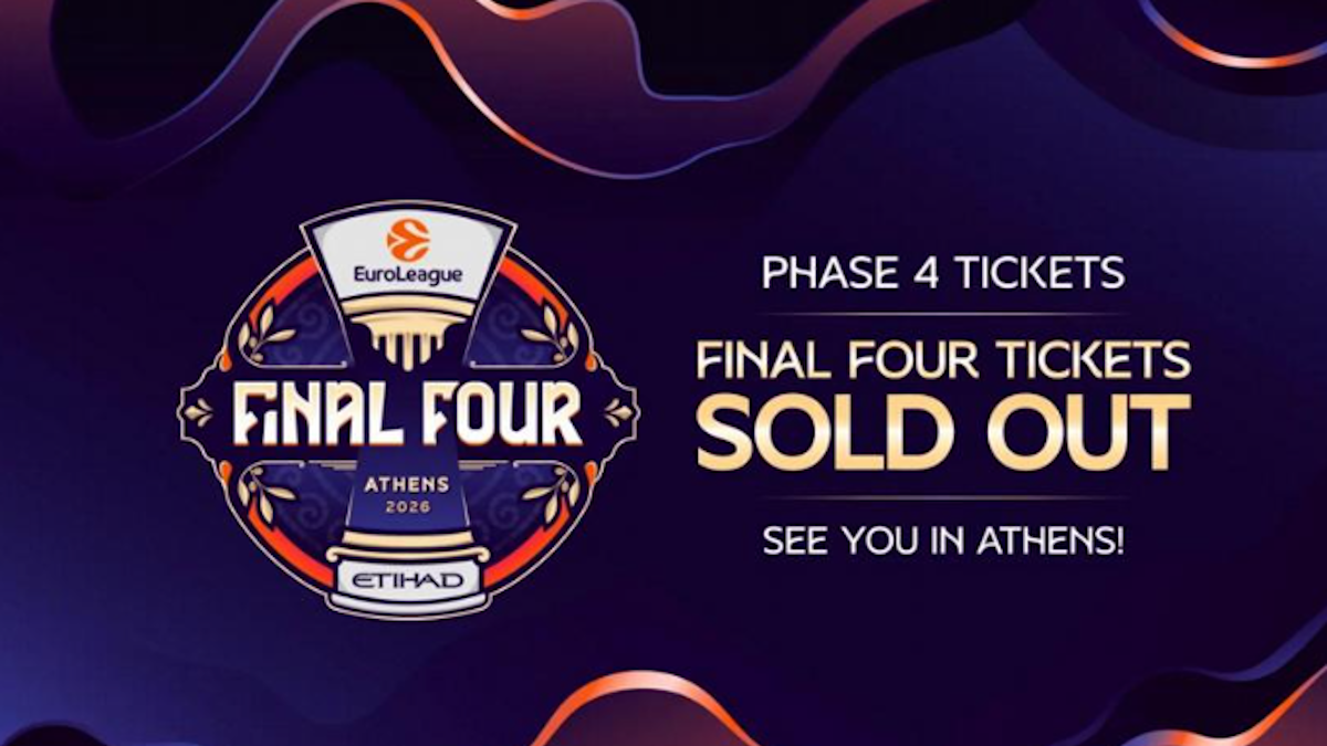 Η εξαιρετική ζήτηση για το Final Four της Euroleague 2026 στην Αθήνα, που παρουσιάζεται από την Etihad, έφτασε στο αποκορύφωμά της, καθώς όλα τα εισιτήρια που διατέθηκαν στο ευρύ κοινό, συμπεριλαμβανομένης της τελικής διάθεσης της Φάσης 4, έχουν επίσημα εξαντληθεί.